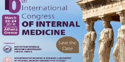 To 10o Διεθνές Συνέδριο Παθολογίας, πρόκειται να πραγματοποιηθεί στην Αθήνα, 22-24 Μαρτίου 2018.